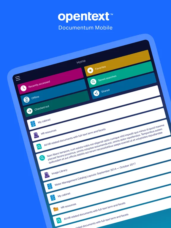 • Faster access to information with favorites and recently accessed documents on the home screen.