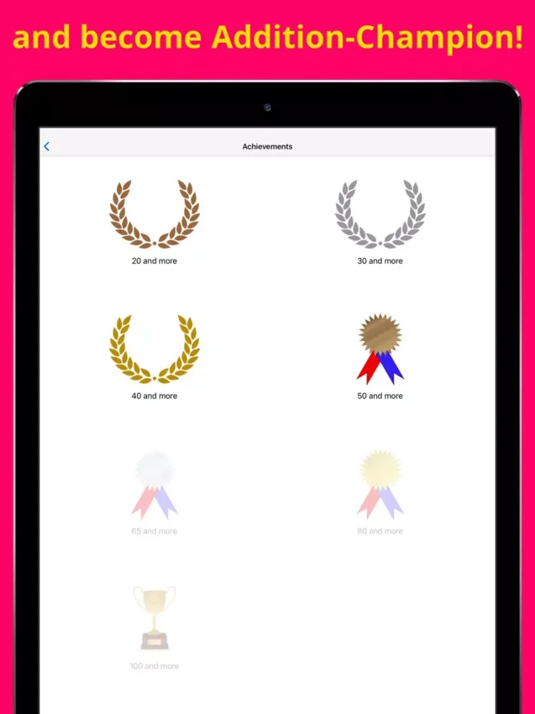 Along the way you receive medals for every achievement. At the end the Addition Cup await you.