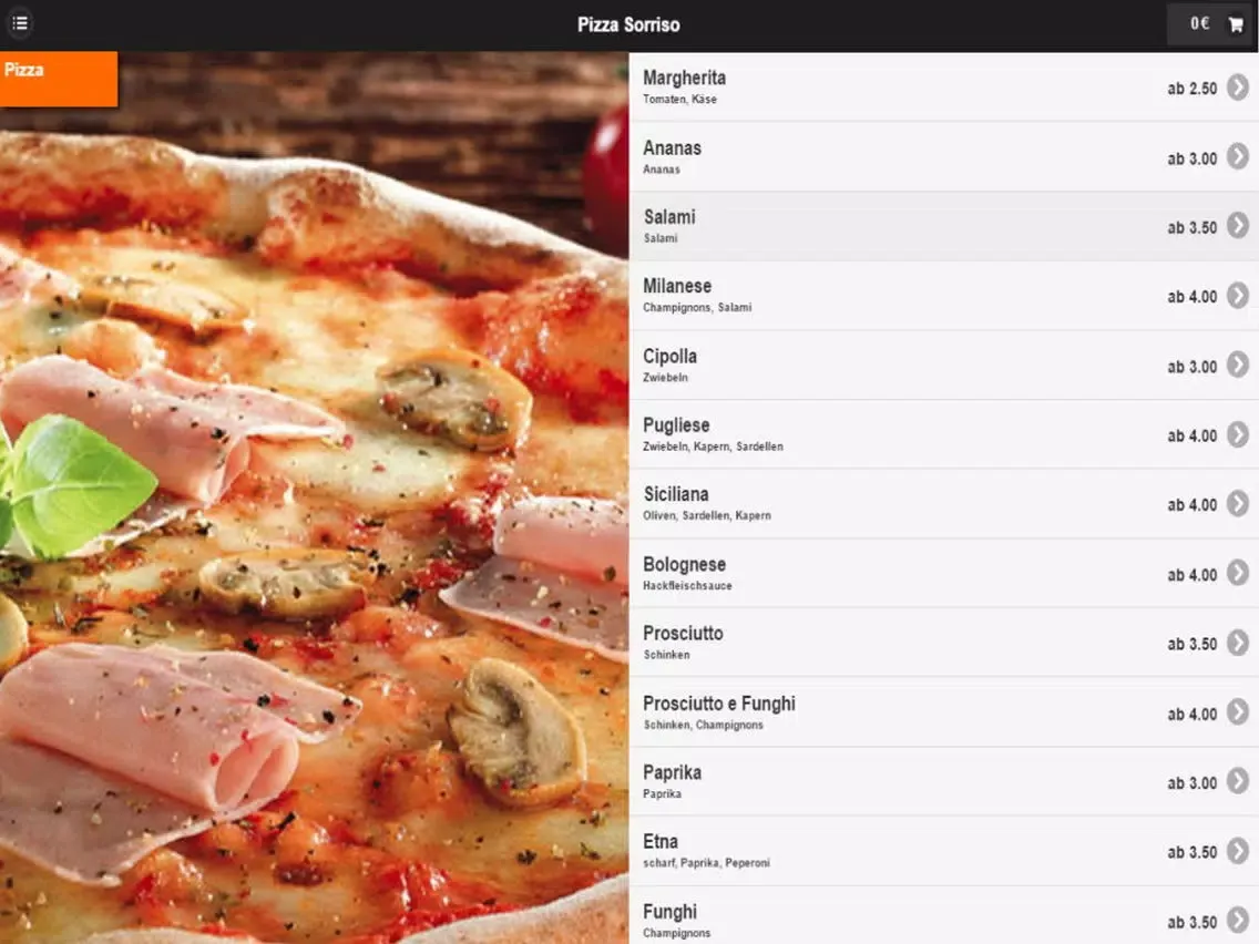 Mit der Pizza Sorriso App können sie in wenigen Schritten leckeres Essen bestellen.