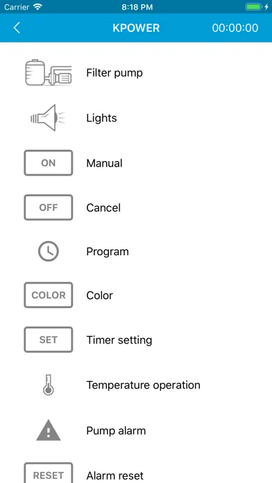 - Turn on/off the spotlights of the swimming-pool and select the lighting timing.