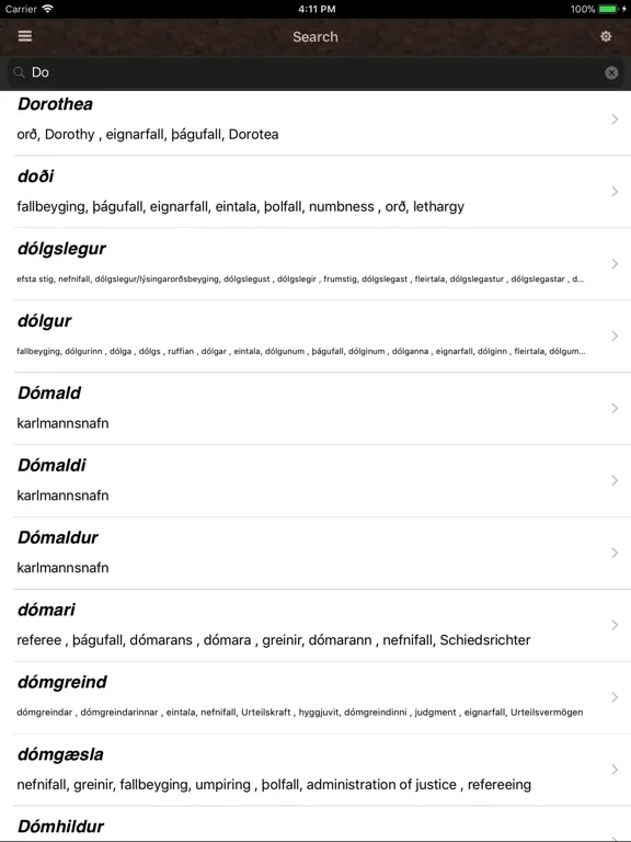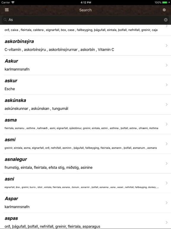An Icelandic Language Dictionary iOS app. Contains more than 15 thousand word definitions. Works offline. No internet connection is necessary once downloaded. All words are 100 percent Icelandic and are composed in Icelandic. This app is appropriate for those seeking to learn or already fluent in the Icelandic language.