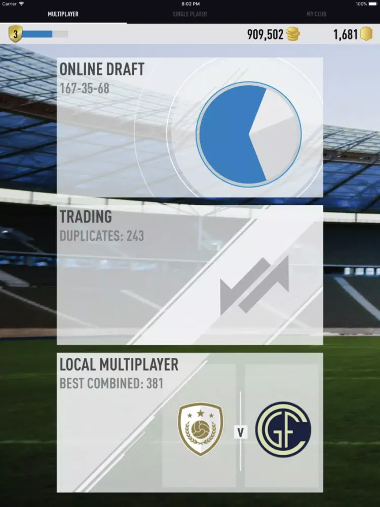 Draft the latest FUT players, build your squads, enter tournaments, and collect awesome rewards. Challenge other players and test your draft-building skills in the brand new Online Drafts. Complete Squad Building Challenges for amazing and unique prizes. Collect awesome cards, trade with your friends, and grow your collection.