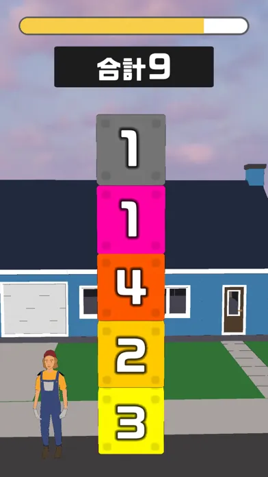 ブロックの数字の合計がお題の数になるように、いらない積み木をタップで吹き飛ばしてください。