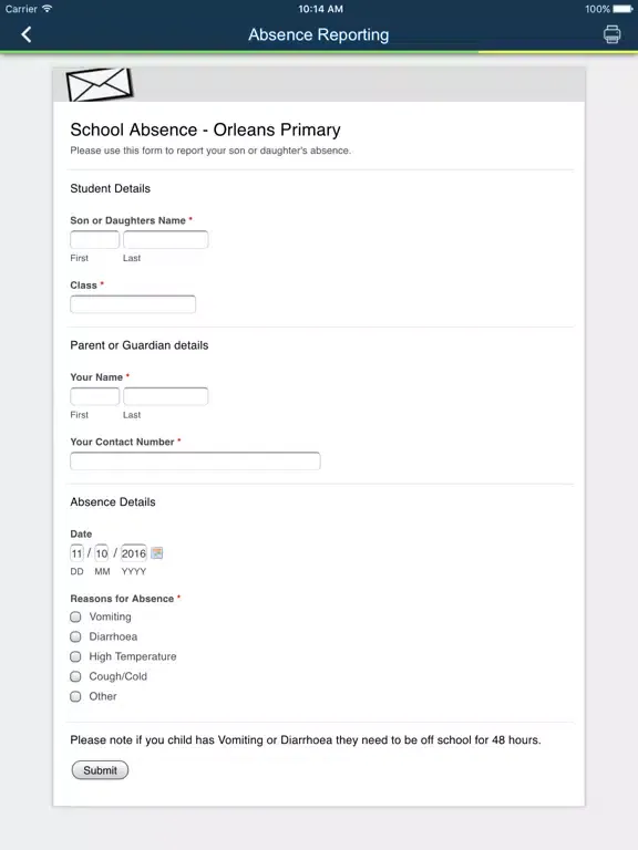 Capturas de tela do Orleans Primary School PTA iPad