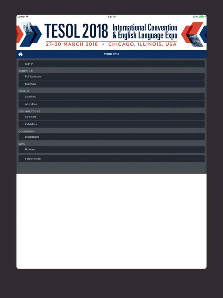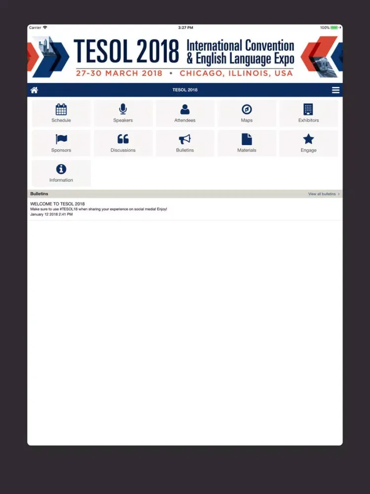 Tangkapan skrin TESOL 2018 iPad
