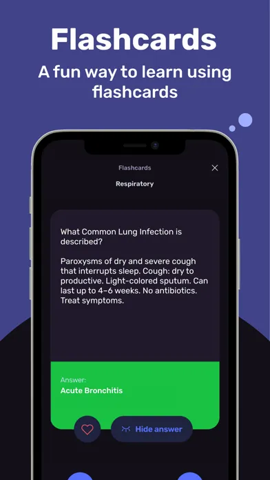 Swipe the cards to quickly review FNP concepts without the need to go through the whole test, complete the right amount of questions for you, and get some quick studying in.