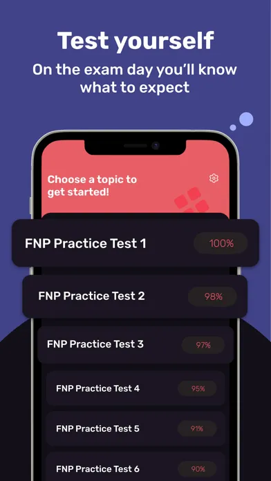 Get your FNP score prediction based on how you pass the real exam simulator, and study the topics you need to revisit to improve your score.