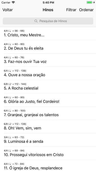 - Filtro de Hinos (ex. Hinos com compasso 6/8);