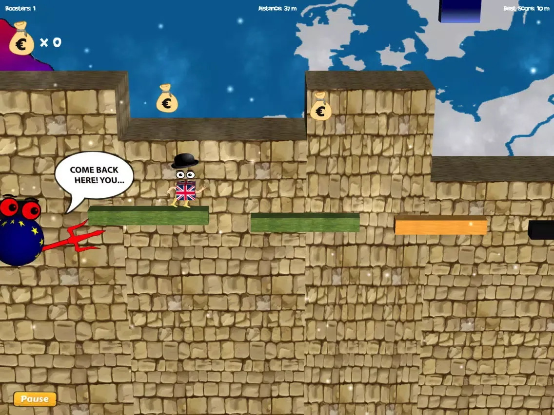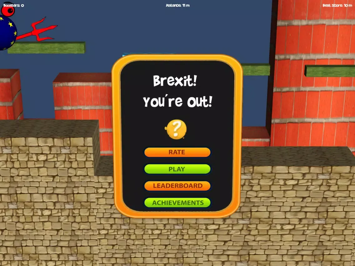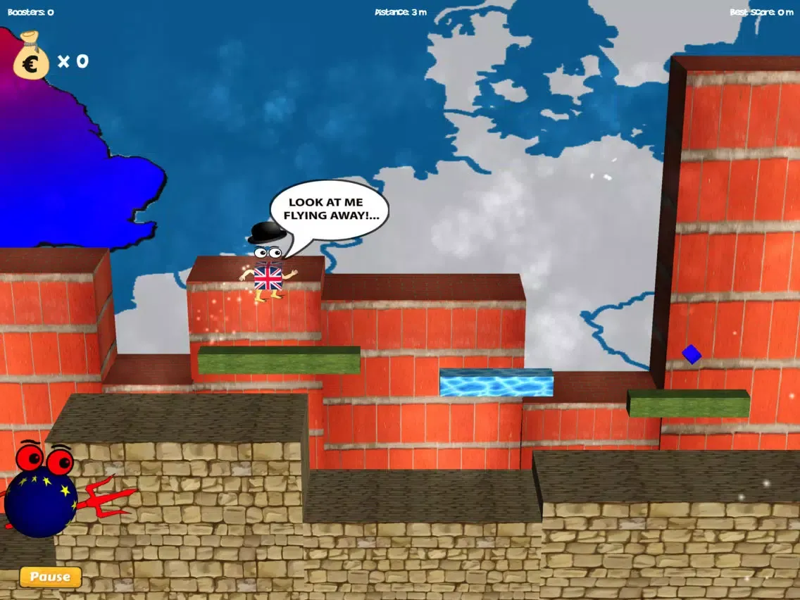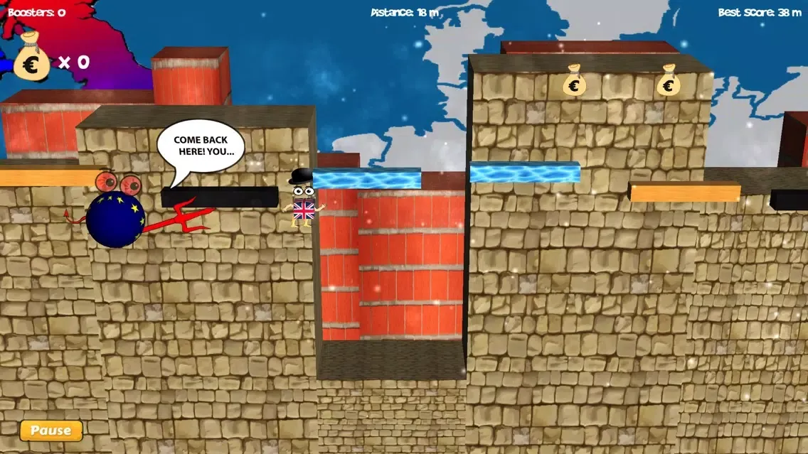 Mr Brexit is both a fun parody game and a social eyeview about the real Brexit. This jump & go game is a 3D casual runner / platformer game where the player (a British character) jumps from platform to platform, running away from an evil like EU. He also needs to avoid all the obstacles that get in the way, like all the other angry EU countries which will try anything to blow up Mr Brexit away. Are you the UK greatest escapist? Go prove it!
