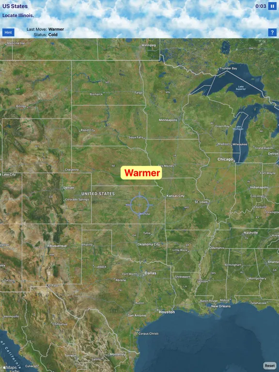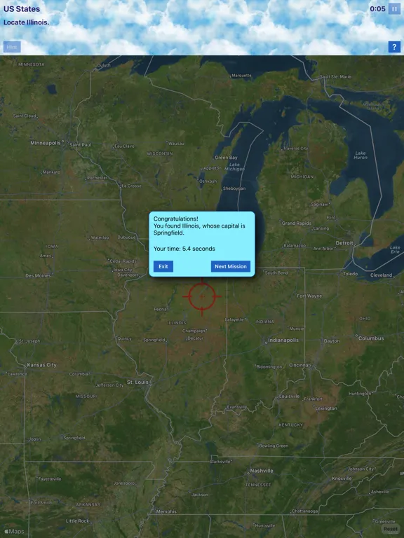 Your goal is to complete a series of missions as quickly as possible. Each mission challenges you to find a location on a map such as the capital of Texas or the African country of Rwanda.