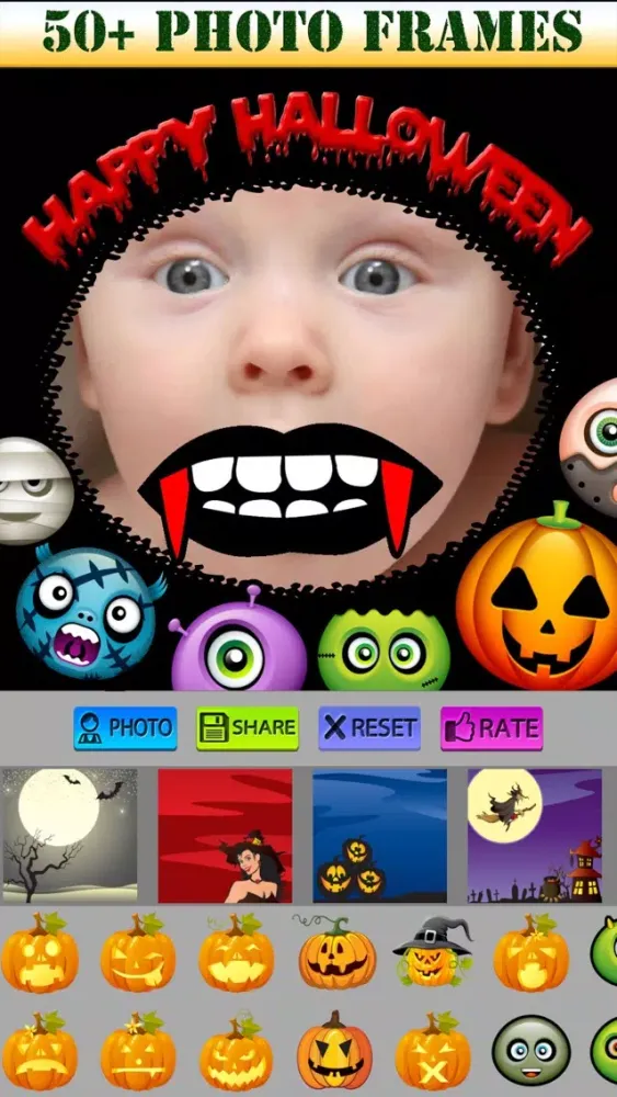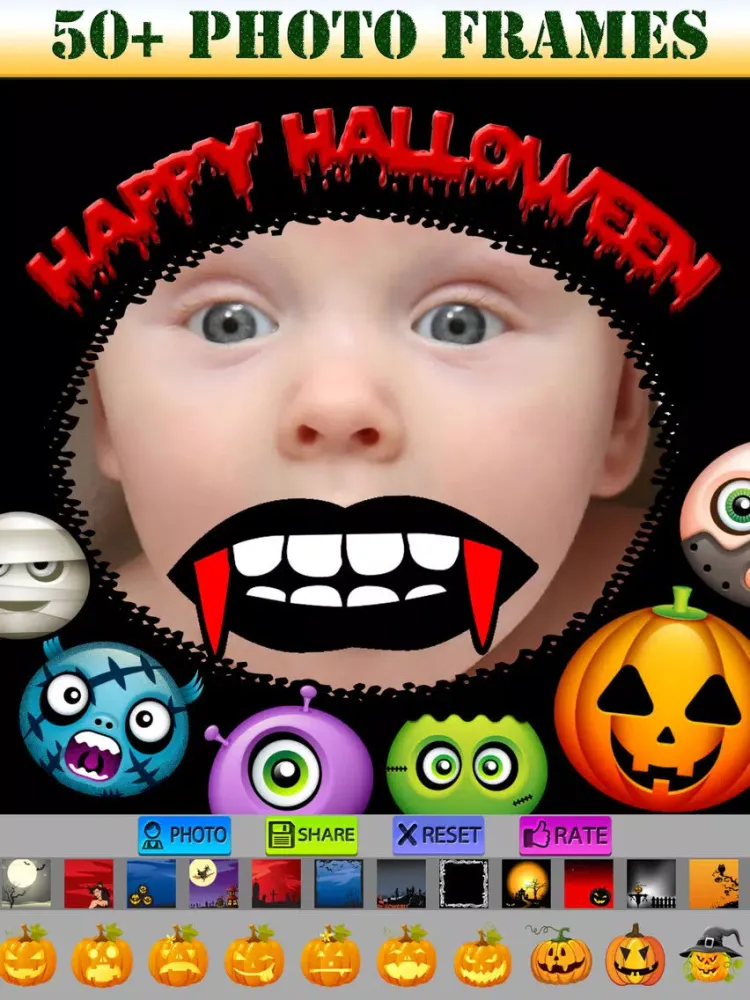 This app is for you to capture every moment of Halloween. You can use your most creative way to add the photo masks, stickers and custom labels to photo frames to make your picture perfect!