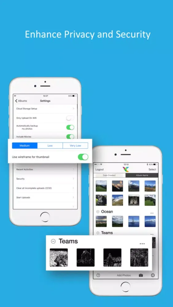 . Set the size of your thumbnails on your mobile device to save space while keeping your photos/videos at full resolution on the cloud and for viewing.