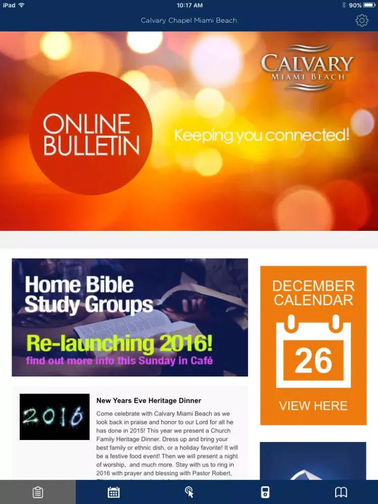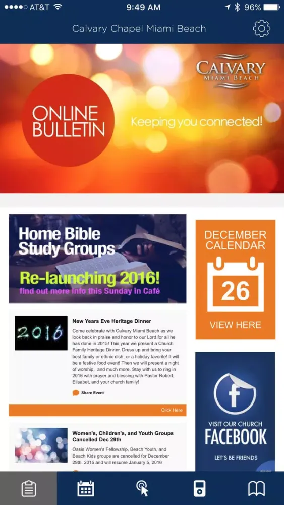 Use the Calvary Miami Beach app to stay connected with weekly bulletins, calendar, video page, and more! Register for events and pay through the app or give online. Read the embedded Bible. For over 2o years Calvary Miami Beach has been "Tearing down the works of darkness, building up the Kingdom of God, and planting the Word of Truth."