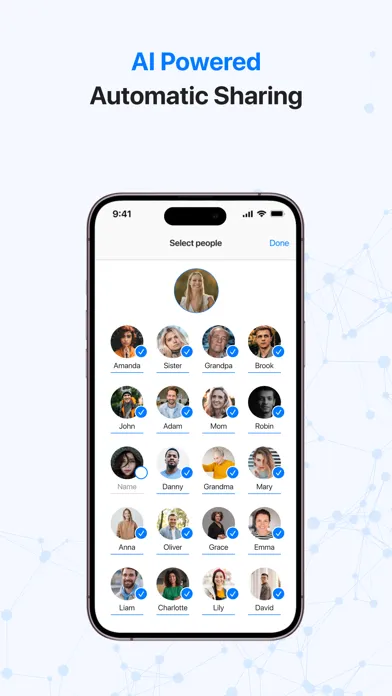 Defining people is a crucial element of this process because it will be used for scanning pictures in the user's phone, and based on face detection and face recognition process the user will get reminders about sharing pictures which will be automatically preselected based on the people they defined. The user can unselect the pictures they don’t want to send out and will always be asked for permission before sending the pictures.