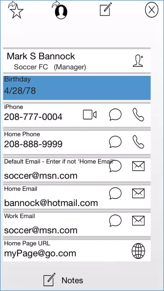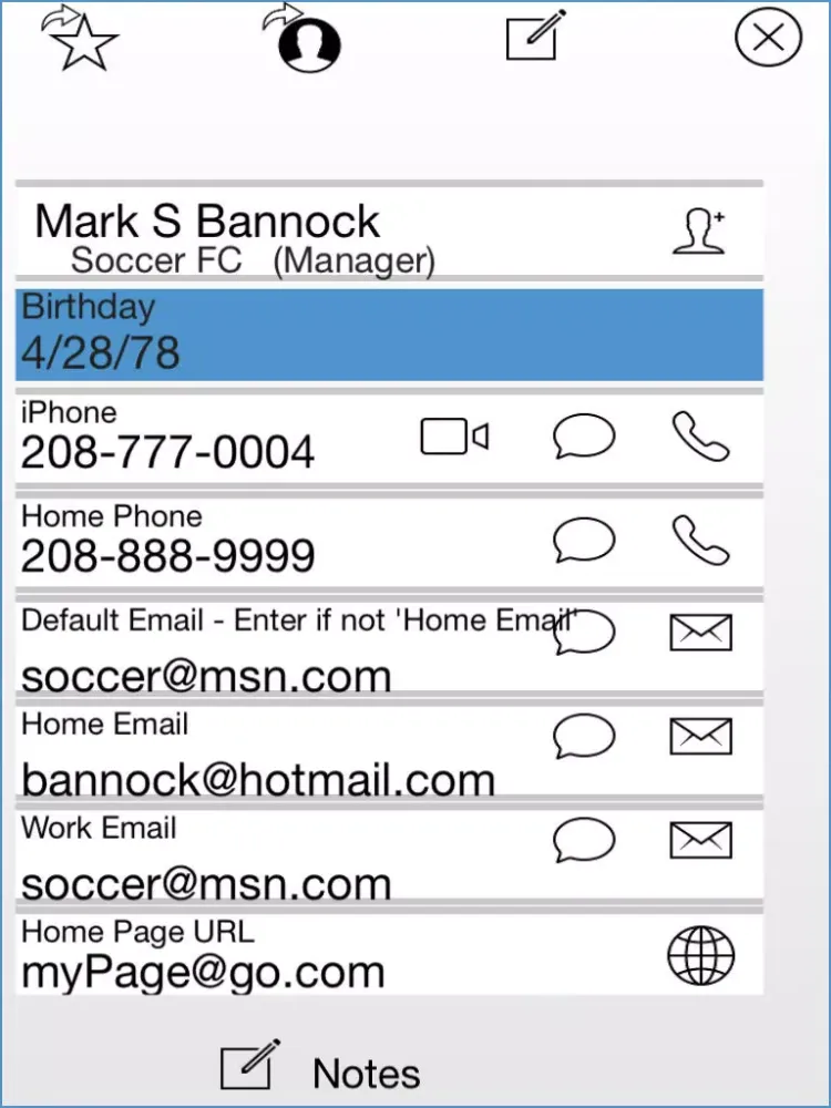 * Use as a Secondary Address Book to hold your Business, Association or Team Contacts