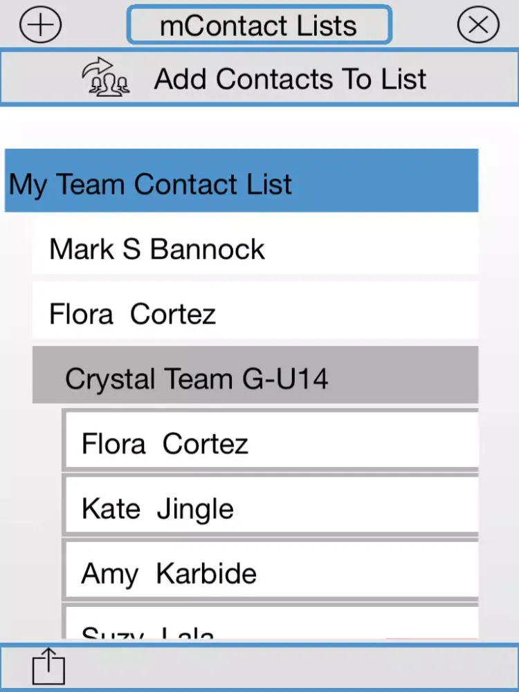 Create Contact Lists containing any number of Contacts and Groups for specific purposes, Emergency Contacts, Teams Members, Project Contractors or Babysitters for example.