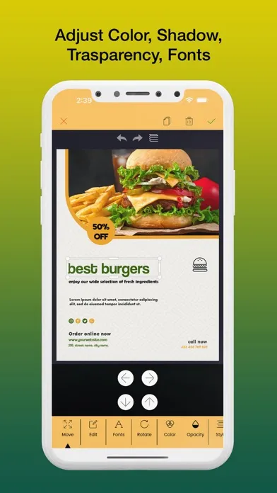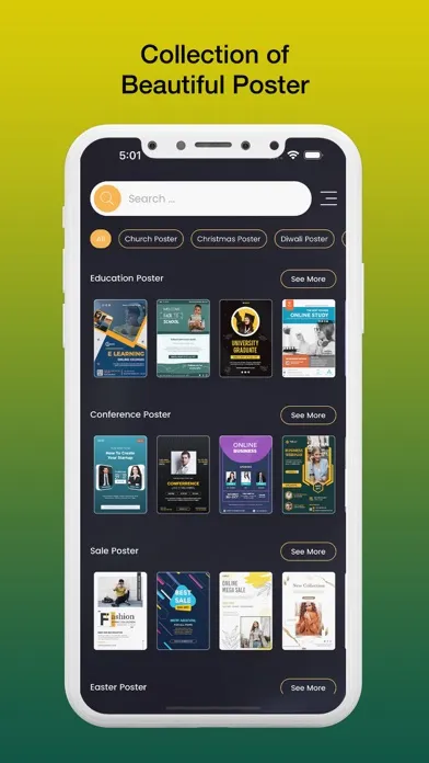 Poster Maker App provides beautiful collection of readymade poster templates. Everything you required is here. User no need to hire person and waste money behind creating poster. Choose any template from collection and edit it easily in just few minutes.