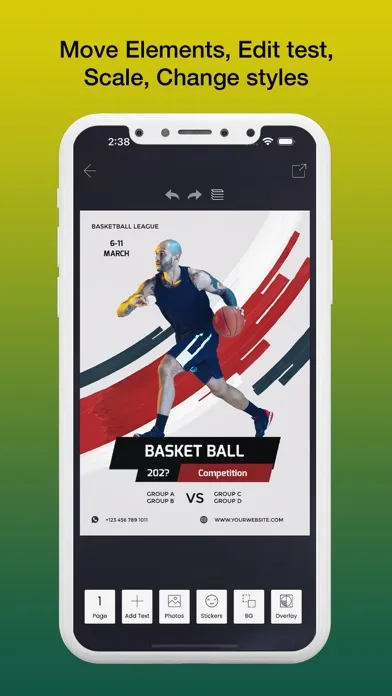 Customise background, edit text, set effects, change styles, fonts and etc. Create professional posters now !