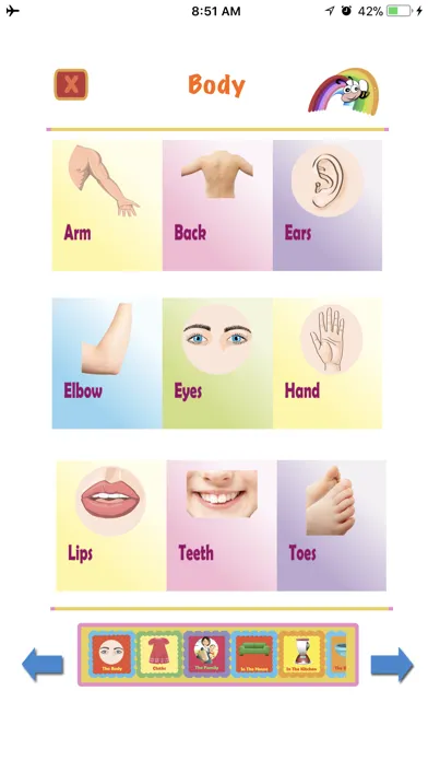 Categories include:Body, Family, Kitchen, In the house, Bathroom, Supermarket, In the city, In the park, Action Words, Tools, Animals, Party Time and many many more