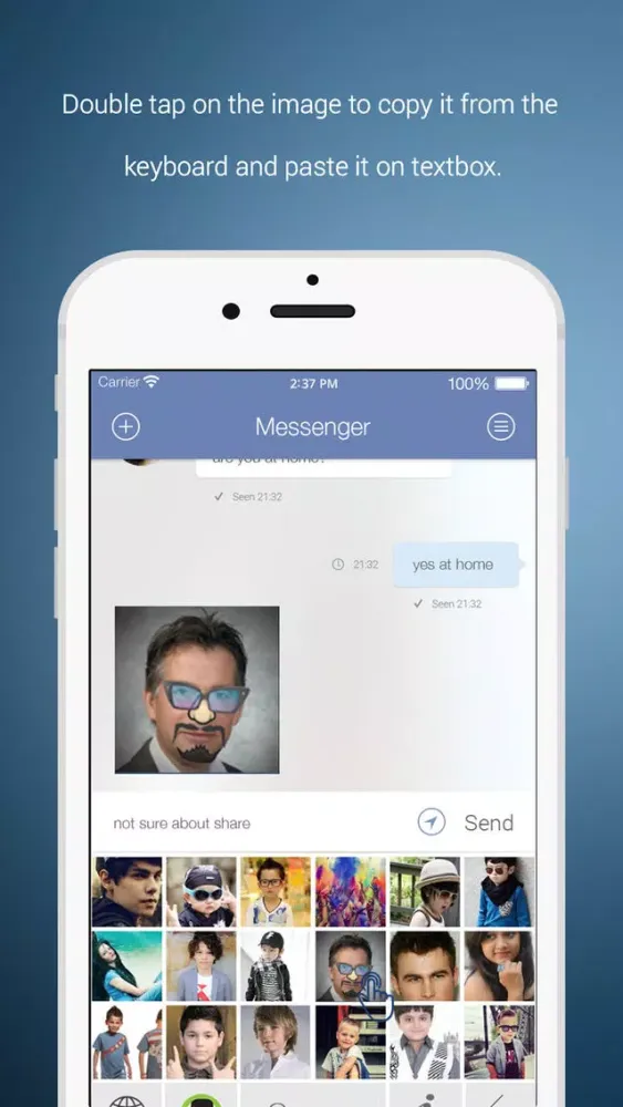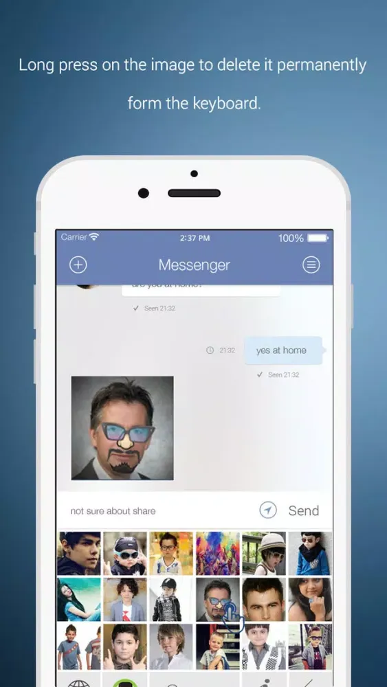 Create your selfies for multiple emotions and add those images to your keyboard extension. No need to type anymore! Just share your own selfie to describe your various emotions!