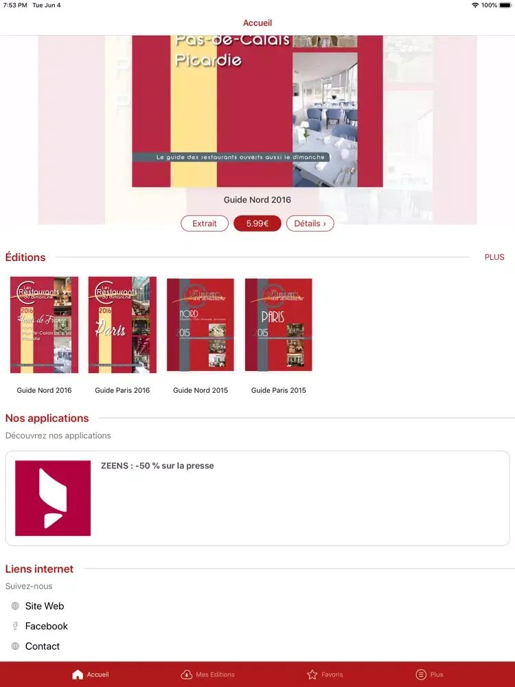 Les Restaurants du Dimanche sur votre tablette ou smartphone : une nouvelle expérience de lecture avec des interactivités (sommaire dynamique, liens internet...).