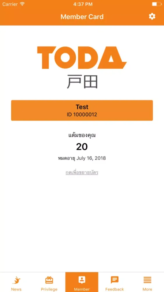 แอพพลิเคชั่นสำหรับสมาชิก Toda