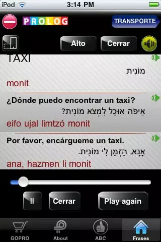 This phrase guide is published by Prolog, an Israeli publishing company that for the last 25 years has specialized in Hebrew self-learning courses for Spanish speakers. We are now offering the application version of the best and most popular series of its kind for teaching Hebrew to Spanish speakers. Its new and one-of-a-kind features make learning and speaking even easier and more enjoyable! And best of all, by touching a line of text, you can listen to a fluent narration of the Hebrew translation.