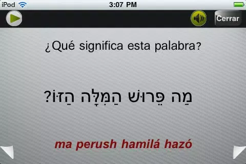 Play All Mode: Plays the words and sentences, in Hebrew and in Spanish, one after the other;