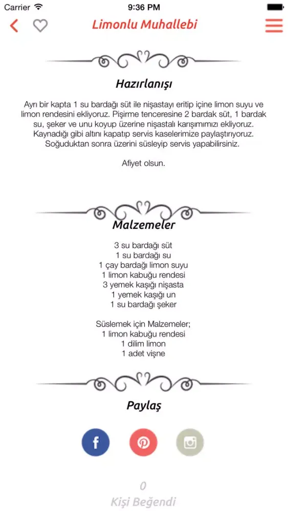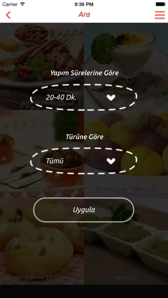 Uygulamanın özelliği ile tarifler arasında arama yapabilir, zamanınıza göre tarifinizi seçebilir, yorumlarınızı bırakabilir ve beğendiğiniz tarifleri bir araya toplayabilirsiniz.