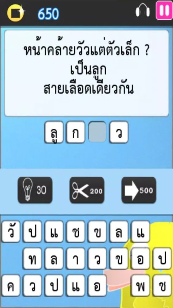 อะไรเอ่ย กวน กวน แอพเกมปริศนา ตัวอักษร จากคำใบ้อะไรเอ่ย คำถามจะเป็นแนวกวนๆ ผู้เล่นต้องอ่านคำใบ้หรือปริศนานี้ แล้วเลือกตัวอักษรมาตอบคำถามให้ถูกต้อง