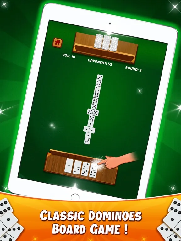 There are two modes of play: Draw and All Fives. Simply place domino tiles on the board to match dominoes numbers, and get rid of all your tiles before your opponent. All Fives offers more complex gameplay.