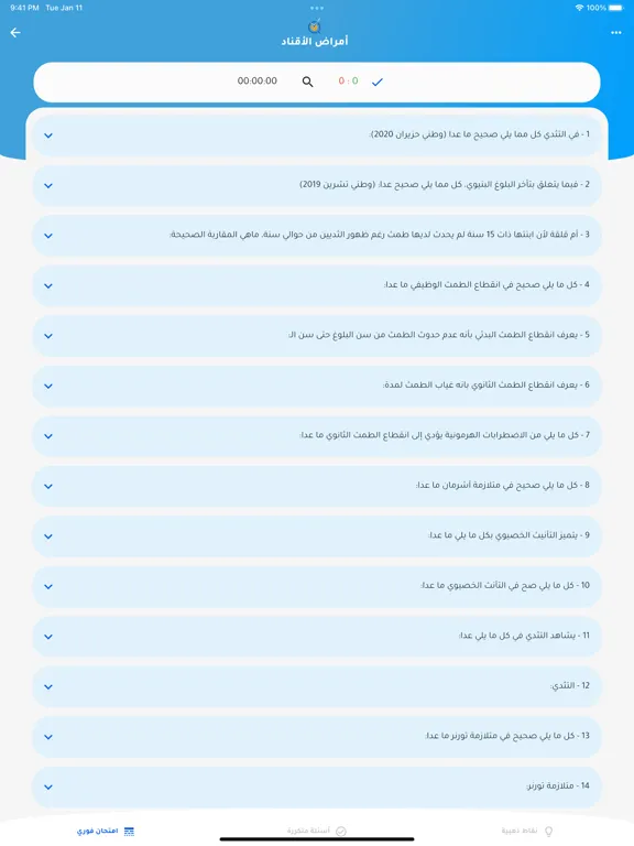 يوفر التطبيق آلاف الأسئلة متعددة الخيارات (باللغة العربية!) لطلاب المرحلة الجامعية في عدة تخصصات.
