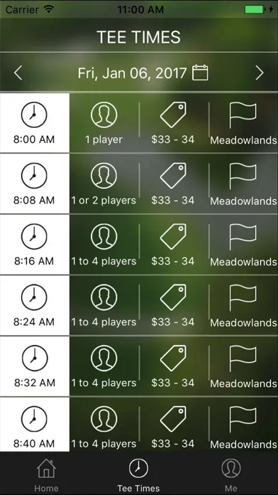 The Meadowlands Golf app provides tee time booking for Meadowlands Golf Club in Calabash, NC with an easy to use tap navigation interface.