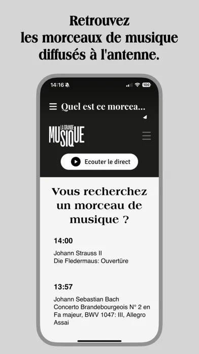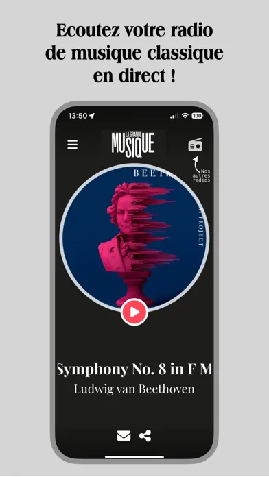 La Grande Musique est la radio 100% classique, la radio de la musique classique. Avec l'application La Grande Musique Classique, vous pourrez :