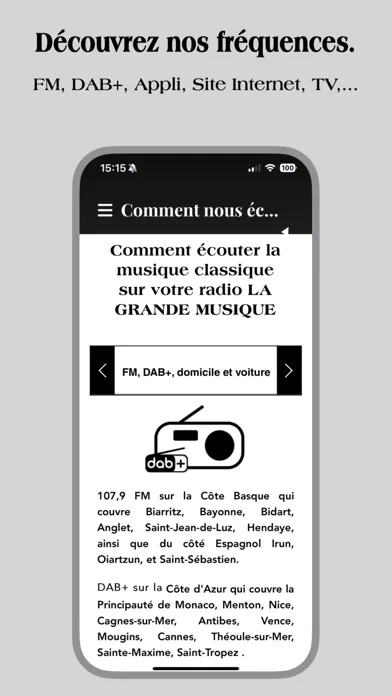- écouter la radio en direct où que vous soyez avec un flux de haute qualité sonore pour écouter la musique classique, sur iPhone, iPad, et maintenant aussi dans votre voiture avec CarPlay