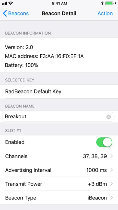 With the RadBeacon app you can scan for nearby configurable Radius Networks Enterprise beacons. Once discovered, you can display each beacon's operating settings and make modifications to those settings.