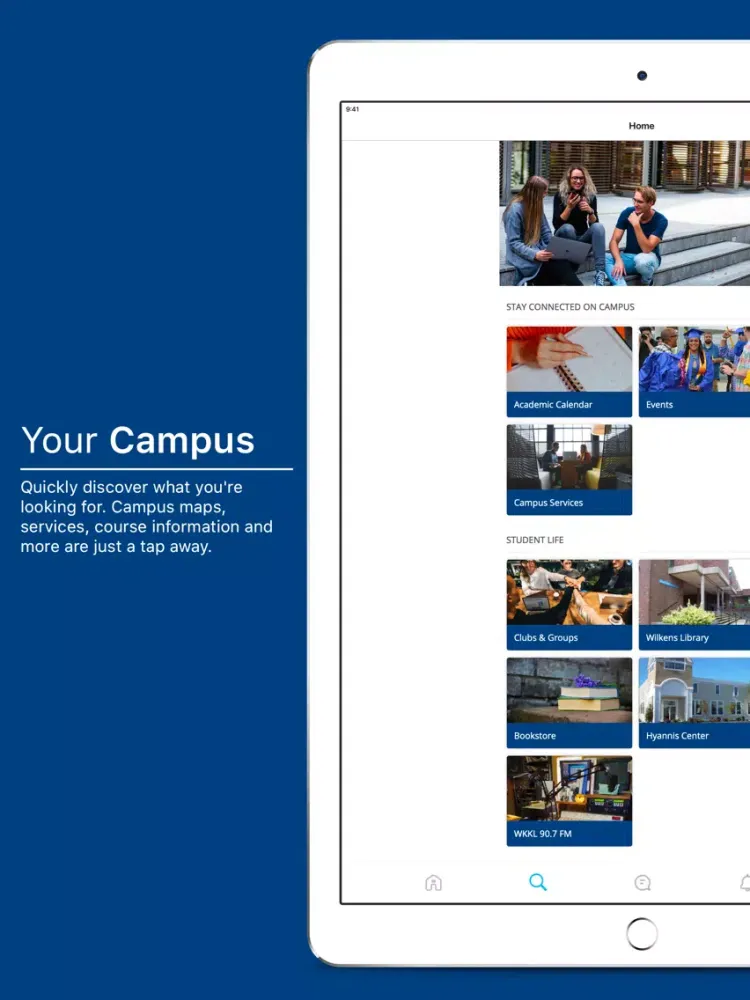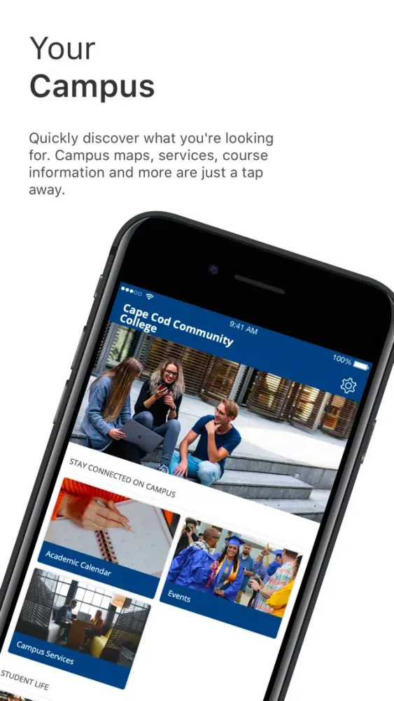 The Cape Cod Community College App brings campus to your fingertips and enables you to connect with our community: Stay on top of your events, classes, and assignments with the built in calendar function, and get notified of important dates, deadlines & security announcements. Make friends, ask questions, and access campus resources at any time!