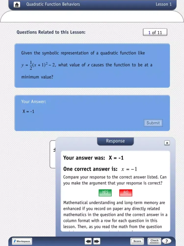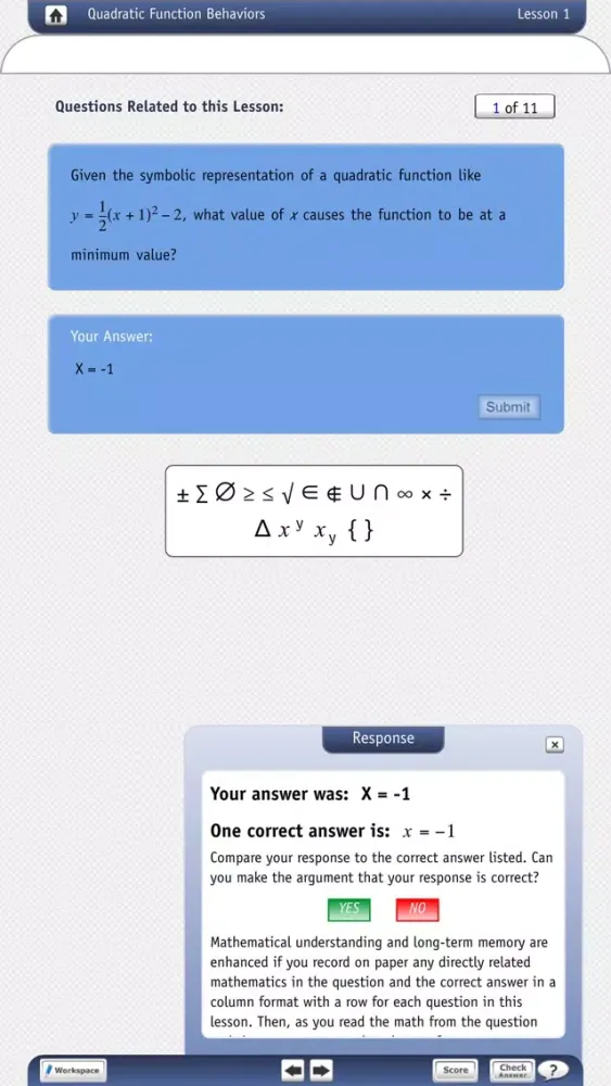 The "Review in Preparation for College Algebra" series contains four (4) apps and has 39 embedded lessons. Since the primary mode of operation of the brain is pattern generalizing, almost all of the lessons are structured as pattern-building activities. Users are encouraged to generalize the patterns using pencil and paper (so that the brain sees the bigger picture), because when they do, the brain creates a memory of the pattern and it understands the generalized algebra in the lesson. The apps also use function as the underlying theme to teach the included algebra. When users connect new algebraic concepts to existing long-term memories of previously learned algebra, the brain understands the new concept or procedure in the lesson. Function representation and function behaviors connect all of the algebra. Lessons consist of open-ended questions, and when the user answers a question, he/she receives a correct response and verbal praise if correct.