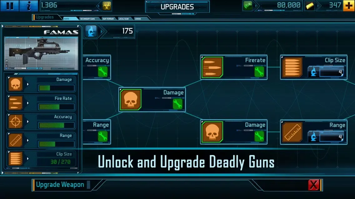- Weapons: Increase your firepower by unlocking new weapons and researching an immense range of upgrades.