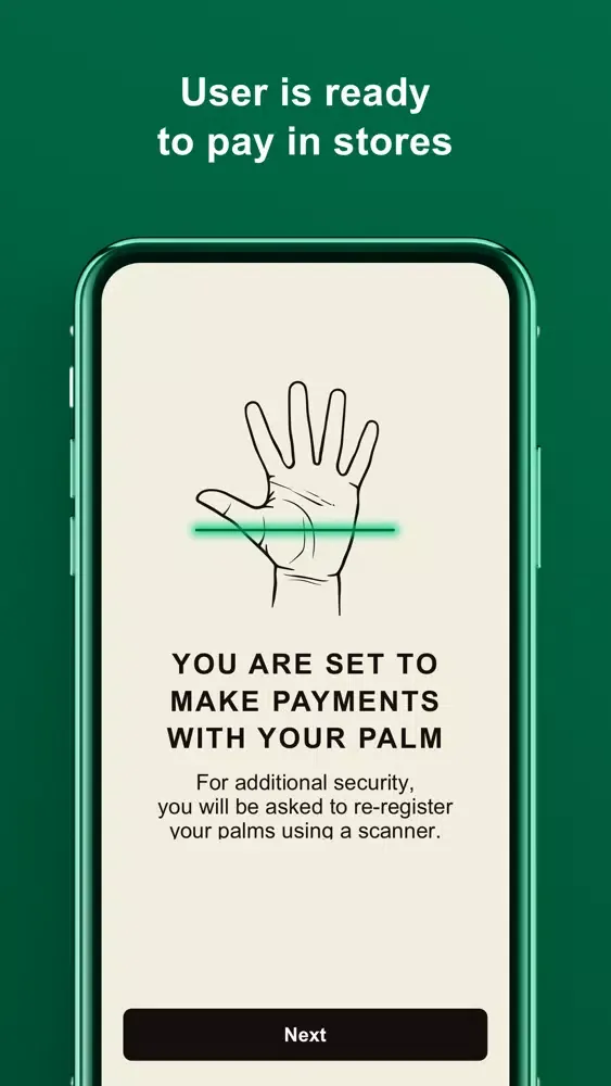 This phone app is a component of NEOM Palm ID payment solution, which can: