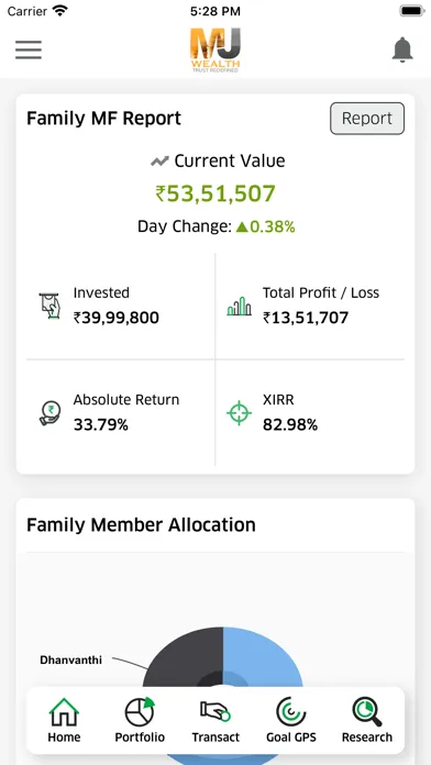 MJ Wealth is a financial application where investor can view his portfolio, calculator,goal tracker and more, Money attractive feature available here for investor more type report and graphical representation etc.