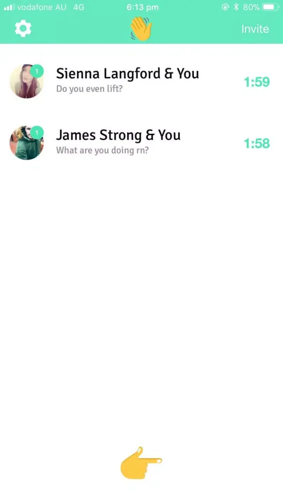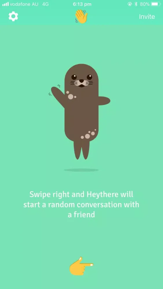 ⁃ Swipe the hand icon and Heythere will randomly choose one of your friends on the app and start a DM with them