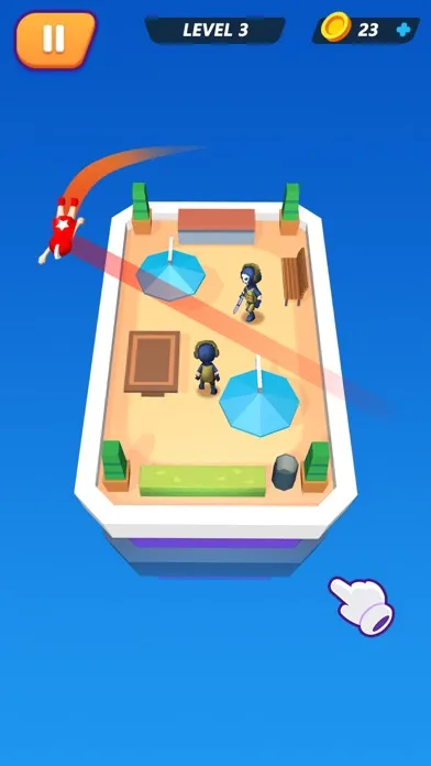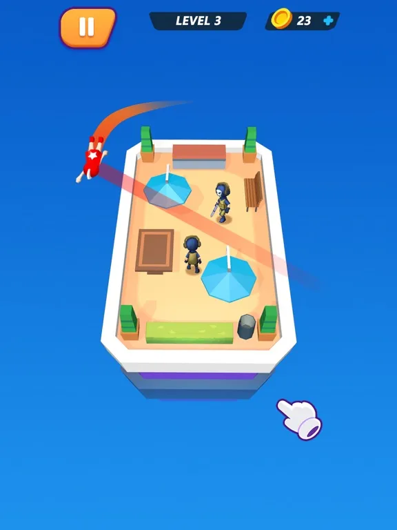 Slide the screen, find the right angle, and attack the bandits by shuttling back and forth, taking care not to harm the hostages