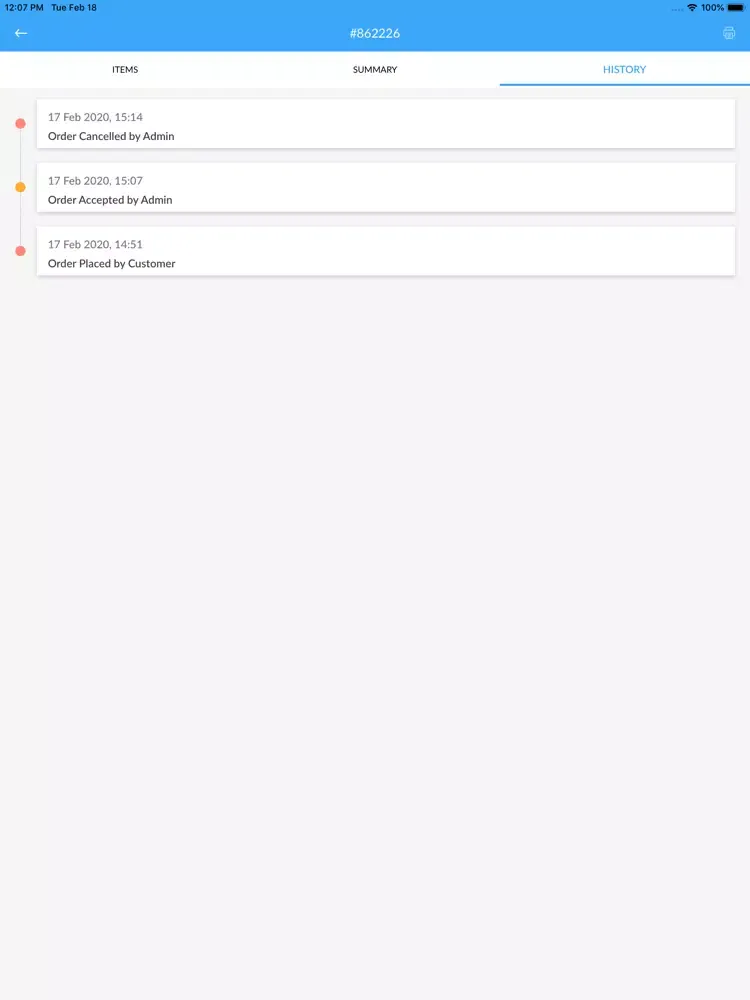 -Orders appear instantly although there is a pull to refresh feature to be extra sure.