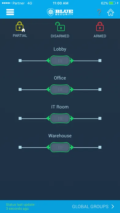 Blue Security smartphone application enables you to remotely monitor and control your Security System from your Wi-Fi or 3G iPhone, iPod Touch or iPad.