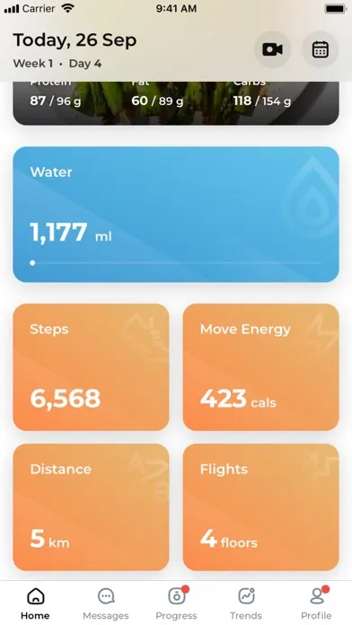 The app integrates with Apple Health to show your daily activity - distance, steps, active energy, and flights to help you better achieve your goals.