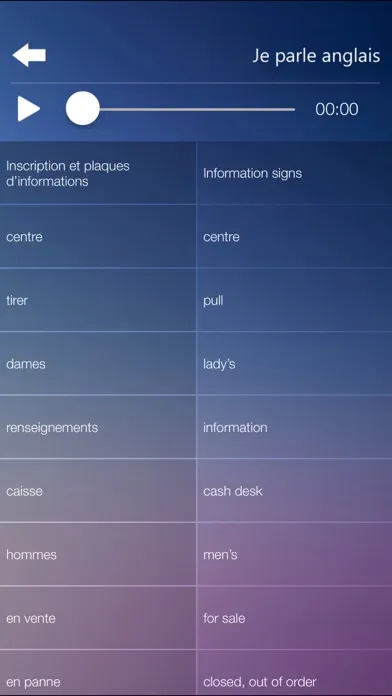 * App is for people who know FRENCH and want to learn the basics of ENGLISH language.