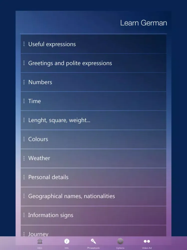 Learn German phrasebook is mainly for people, who don’t speak German but it may also be useful for people, who have come across German language already. Recommended app for tourists and business people visiting Germany or German speaking countries.