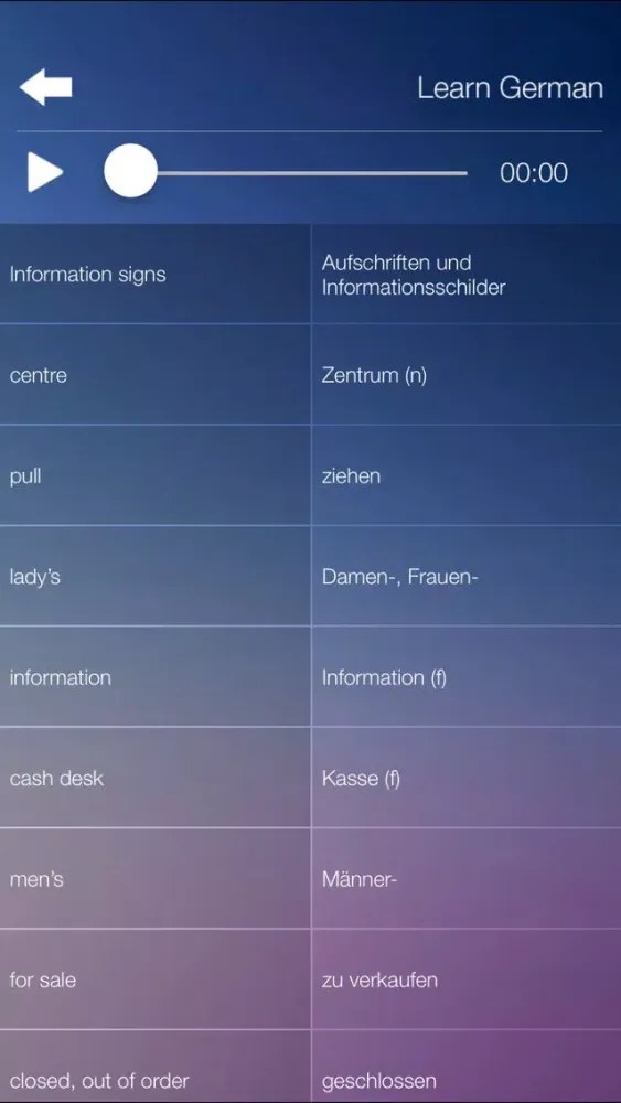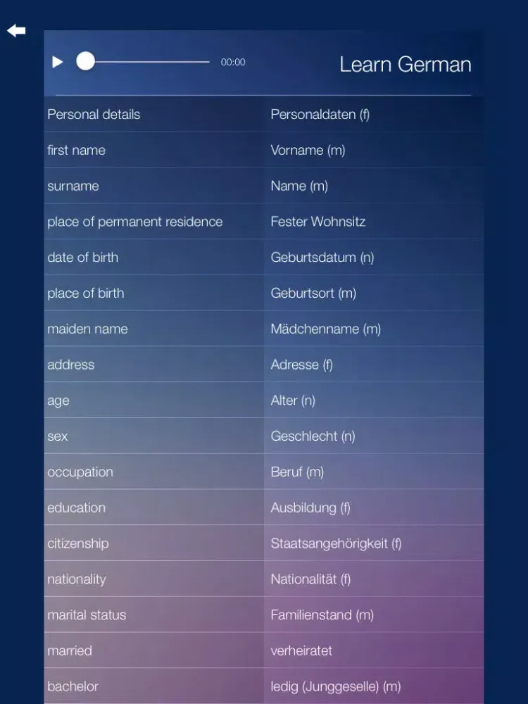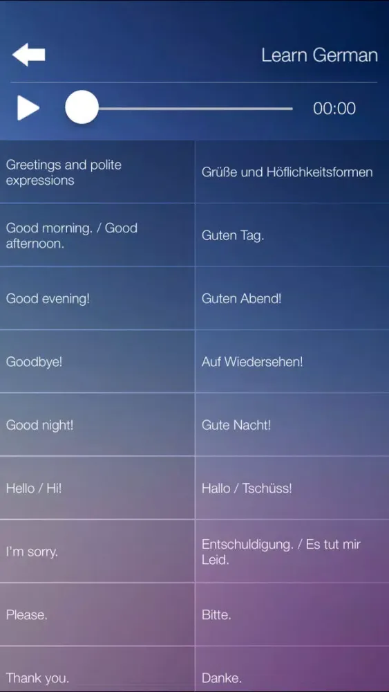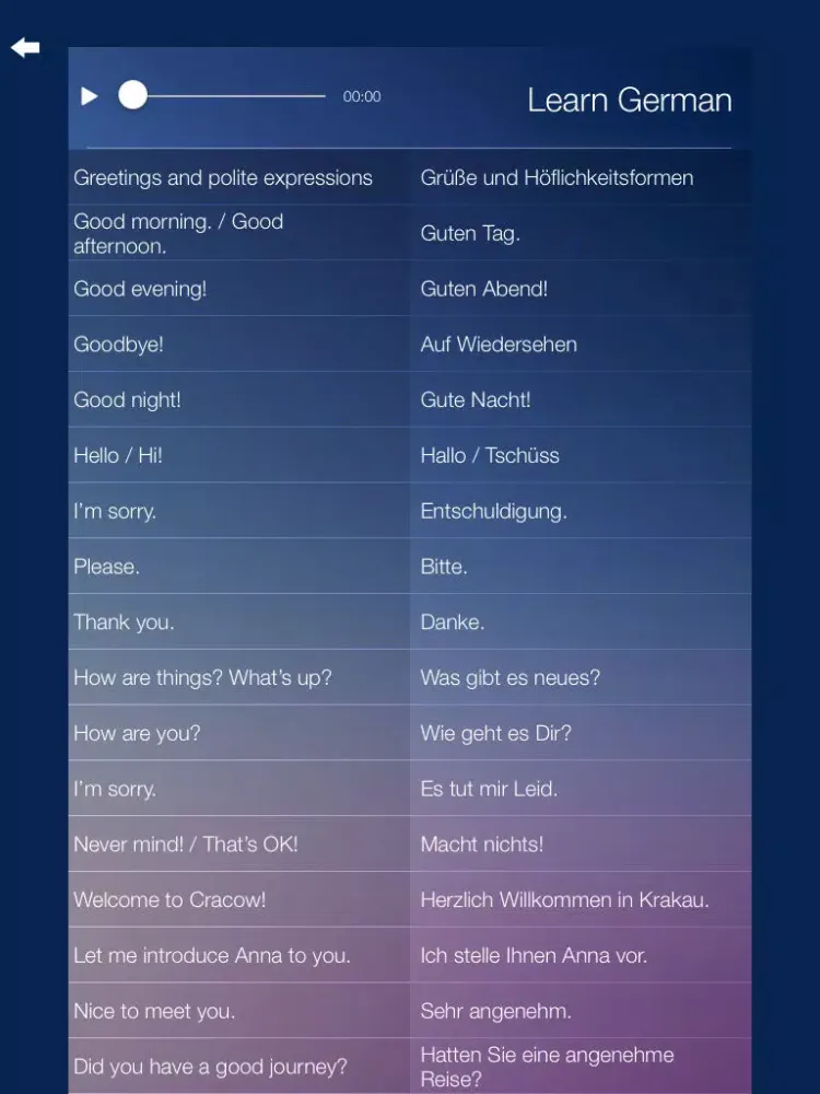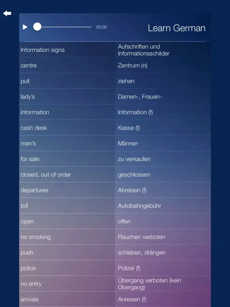 The most essential words and phrases of the German language, each with native speaker audio. Perfect travel app!