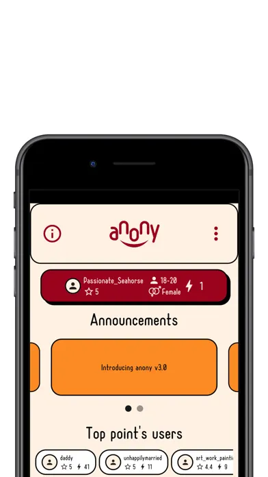 anony makes it possible to have a REALLY anonymous experience to vent and express yourself freely, anony helps you connect to a fun, uplifting, positive, and understanding community, making it easy to share your feelings with people around the world and lift your mood.
